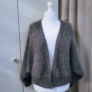 Dann wollte ich zum SoleShirt einen passenden Cardigan stricken. Keine Ahnung, was da schiefgegangen ist. Er ist viel zu groß geraten.
